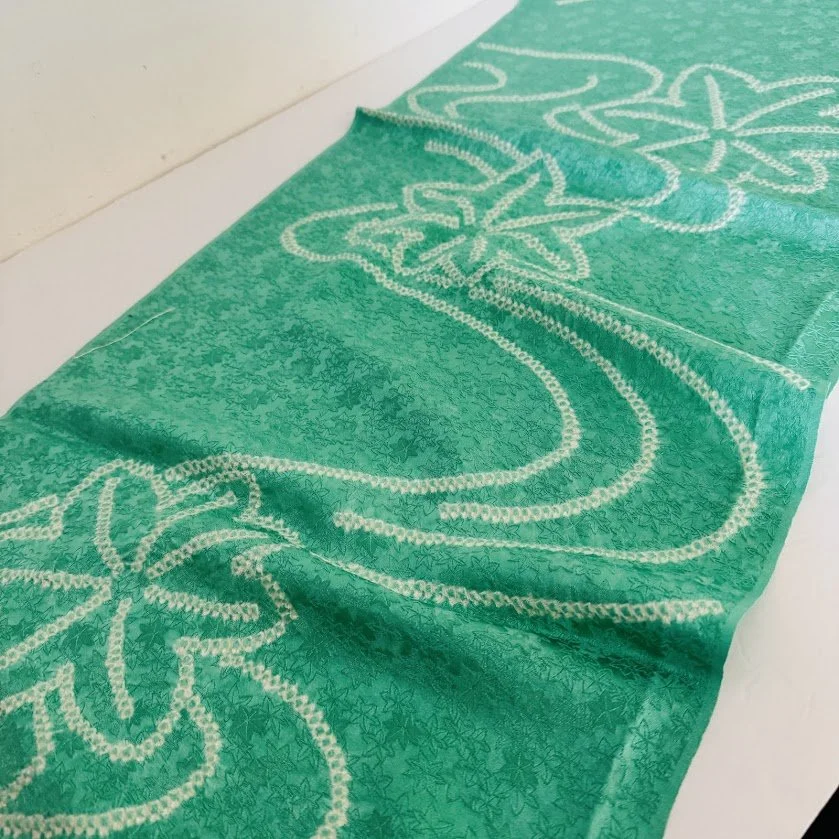 Aquamarine Shibori Jacquard Silk Kimono Fabric SE82