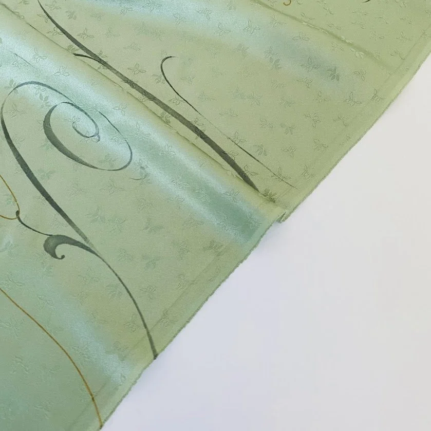 Pastel Sage Rinzu Hand Painted Kimono Silk RU28
