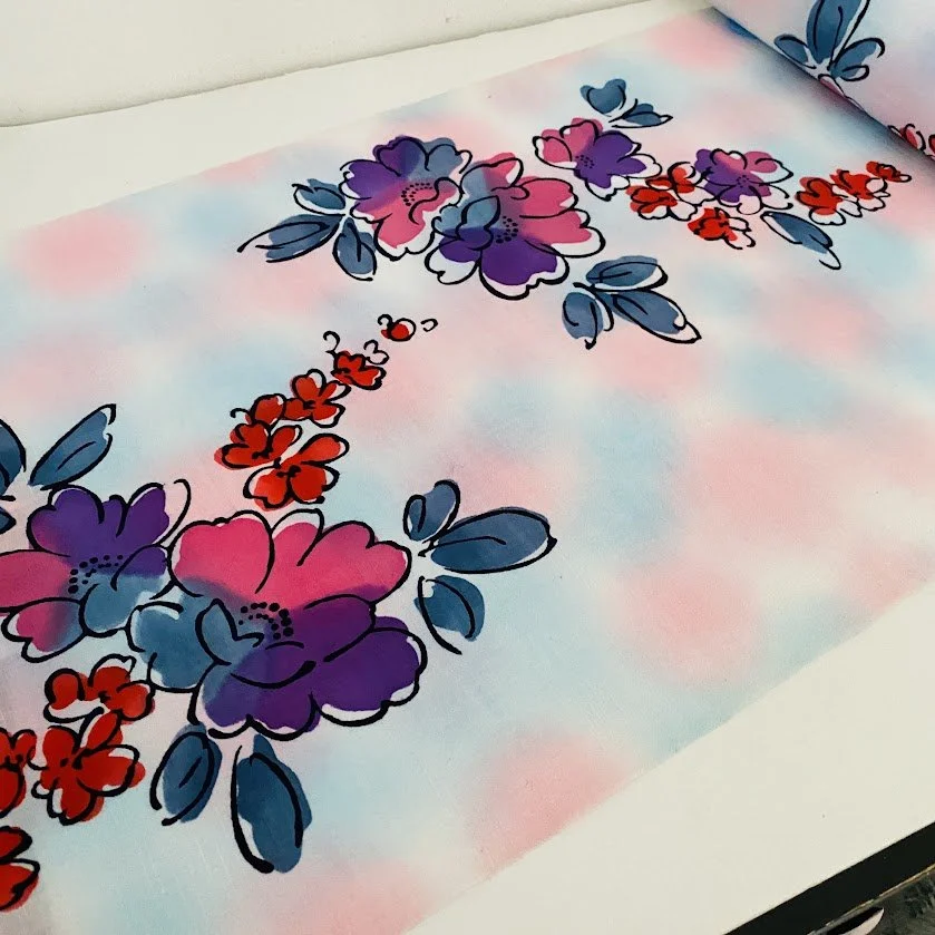 Colorful Glow Hand Painted Chirimen Kimono Silk CJ2