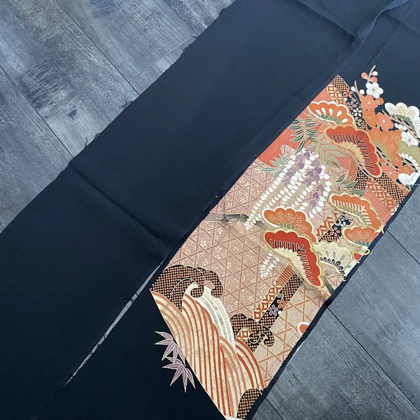 Magnificent #C#D Hand Painted Tomesode Black LONG Vintage Silk Japanese Kimono Fabric High Quality Authentic ToF46