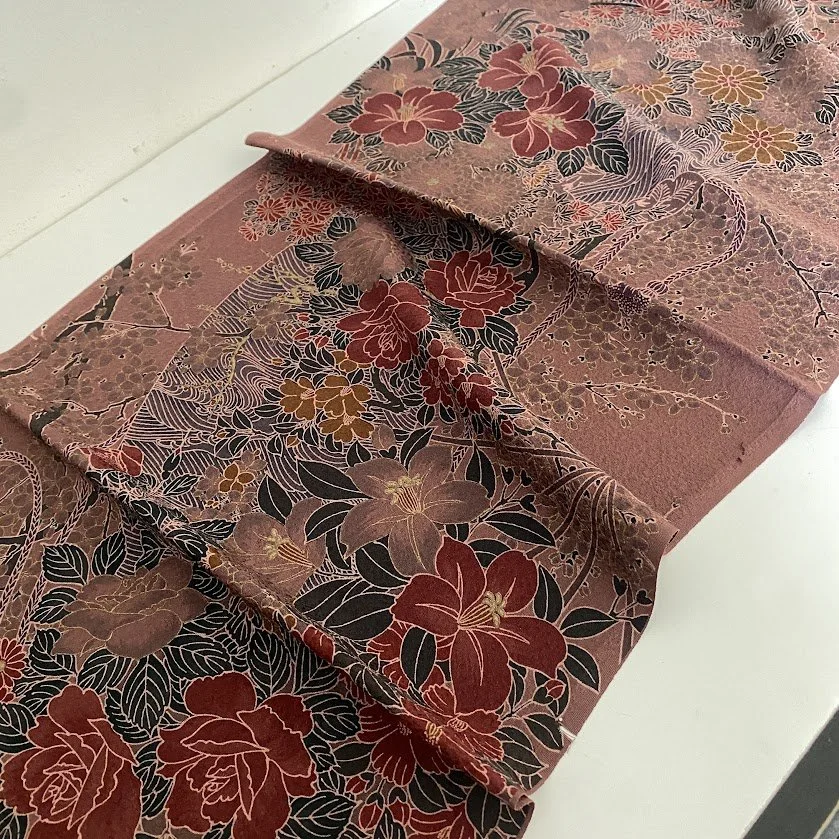 Dark Mauve Hand Painted Silk Kimono Fabric RT10