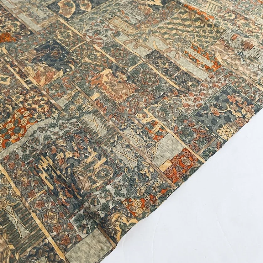 Brown Landscape Silk Tsumugi Kimono Fabric TJ8