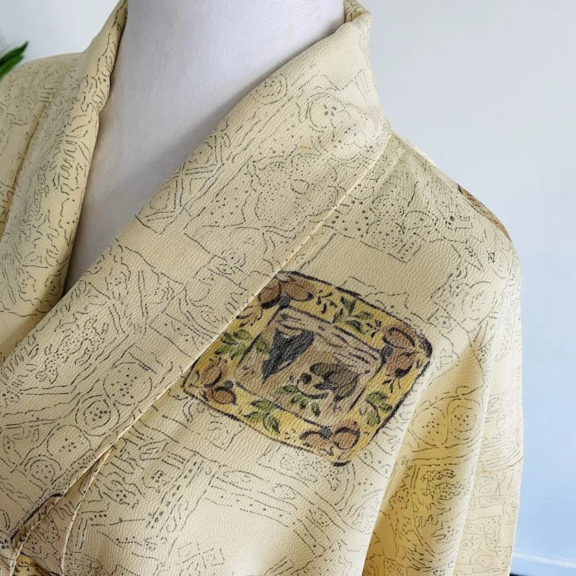 Ivory Grape Vine Jacquard Kimono Silk BSL