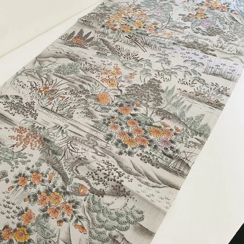 Weeping Willow Hand Painted Jacquard Silk Kimono Fabric RT46