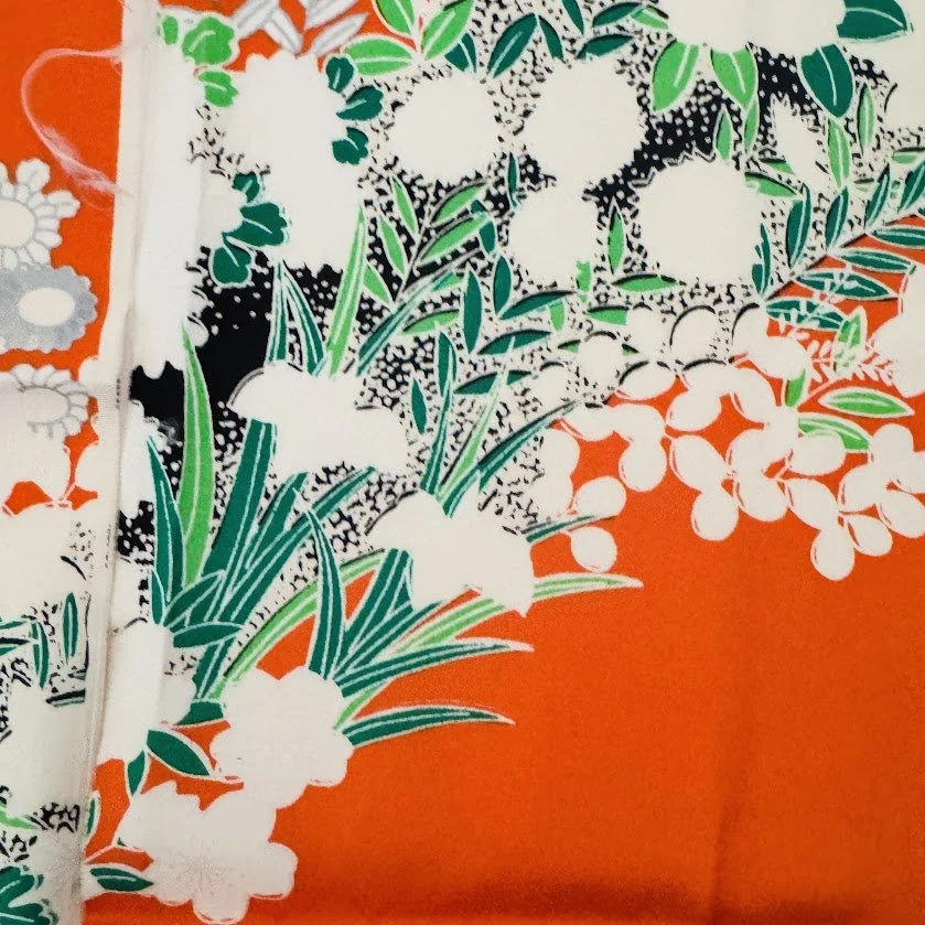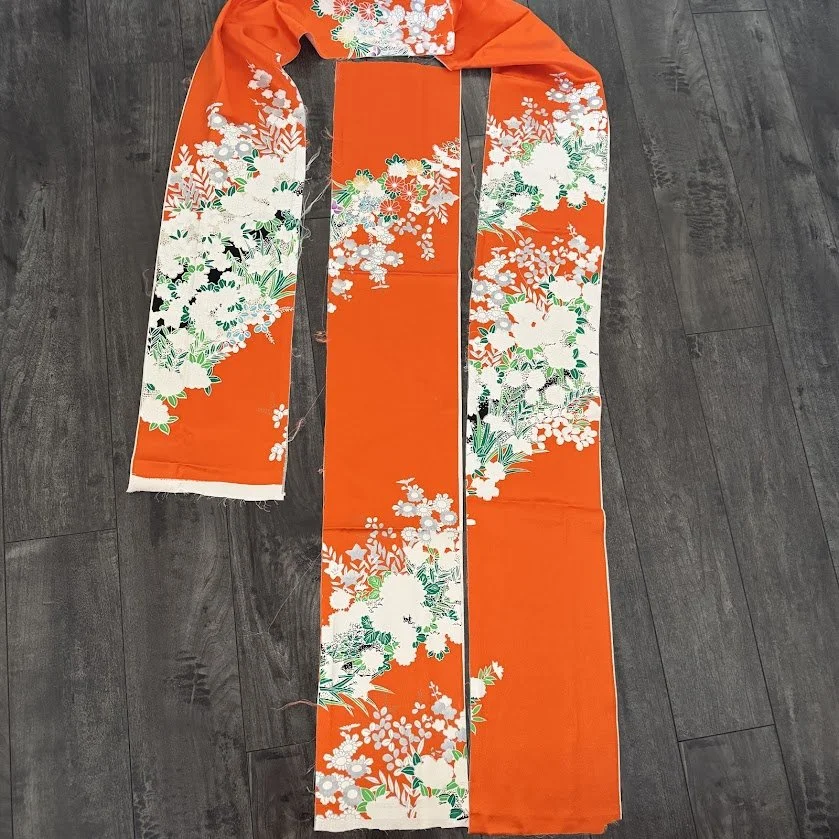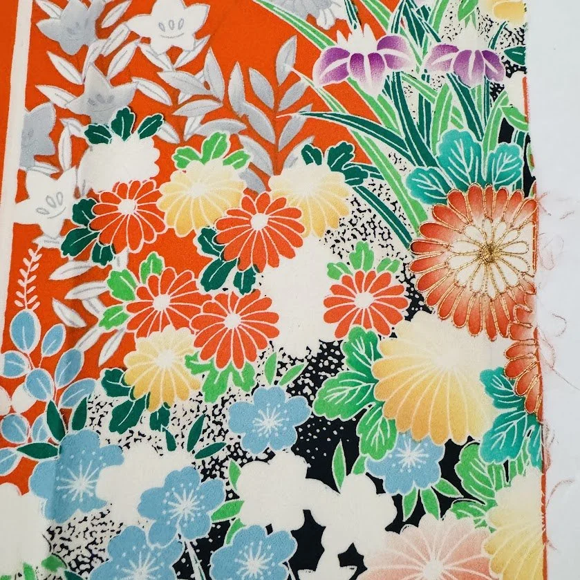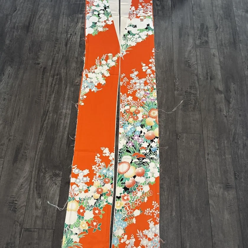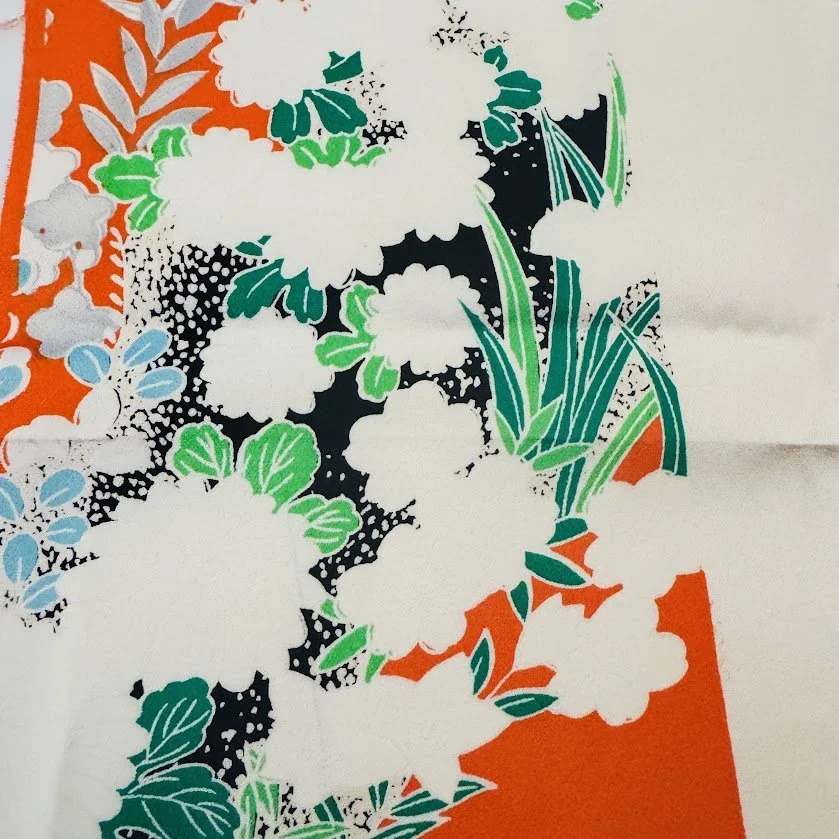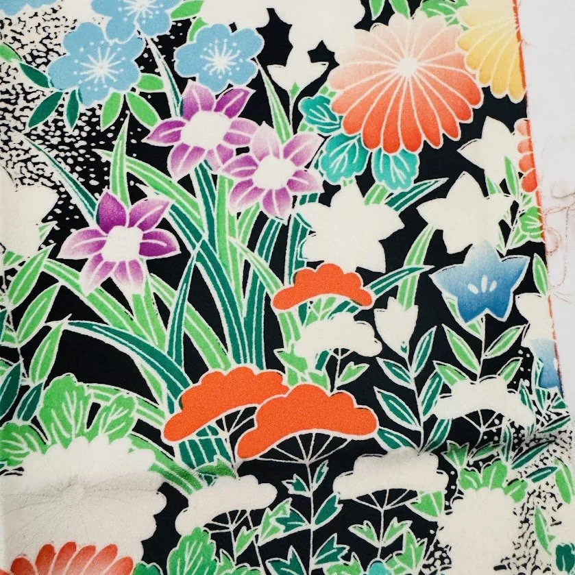 English Garden Hand Painted Silk Tsumugi Kimono Fabric TH88
