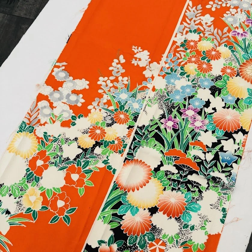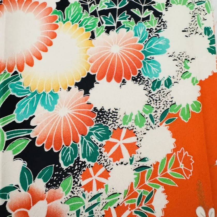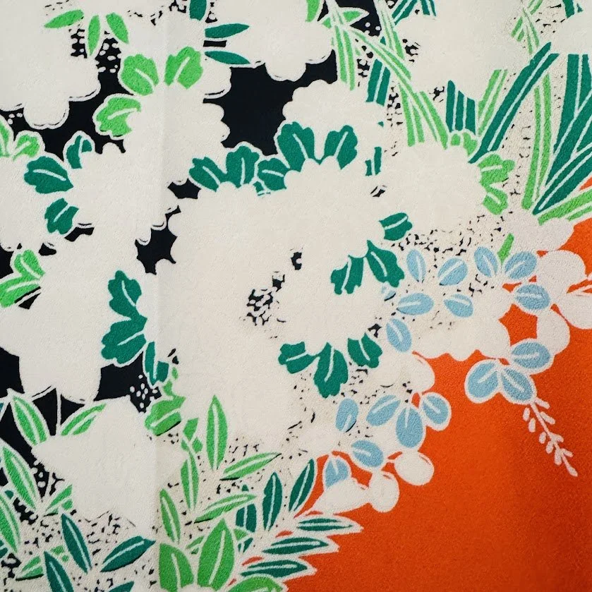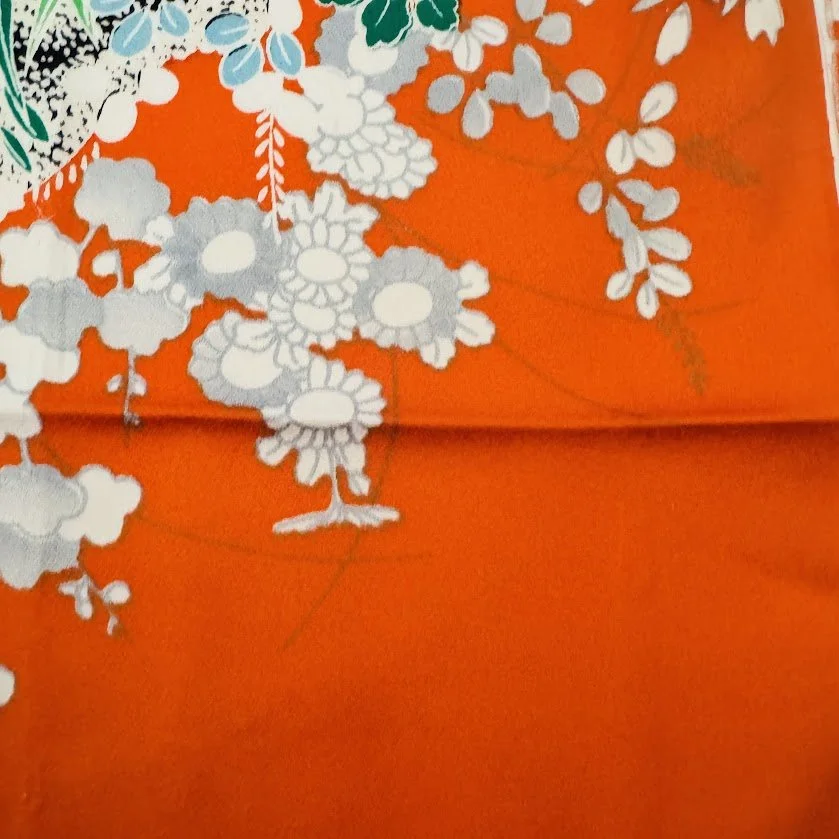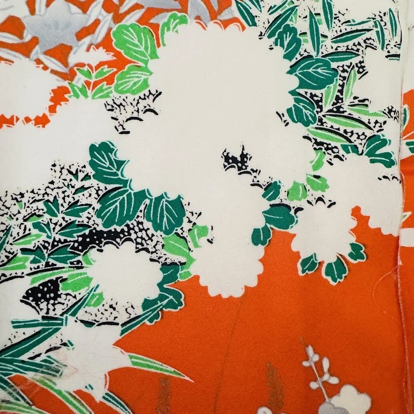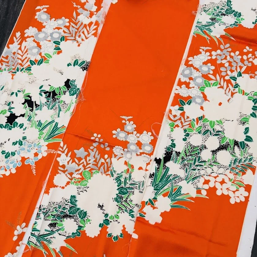 English Garden Hand Painted Silk Tsumugi Kimono Fabric TH88