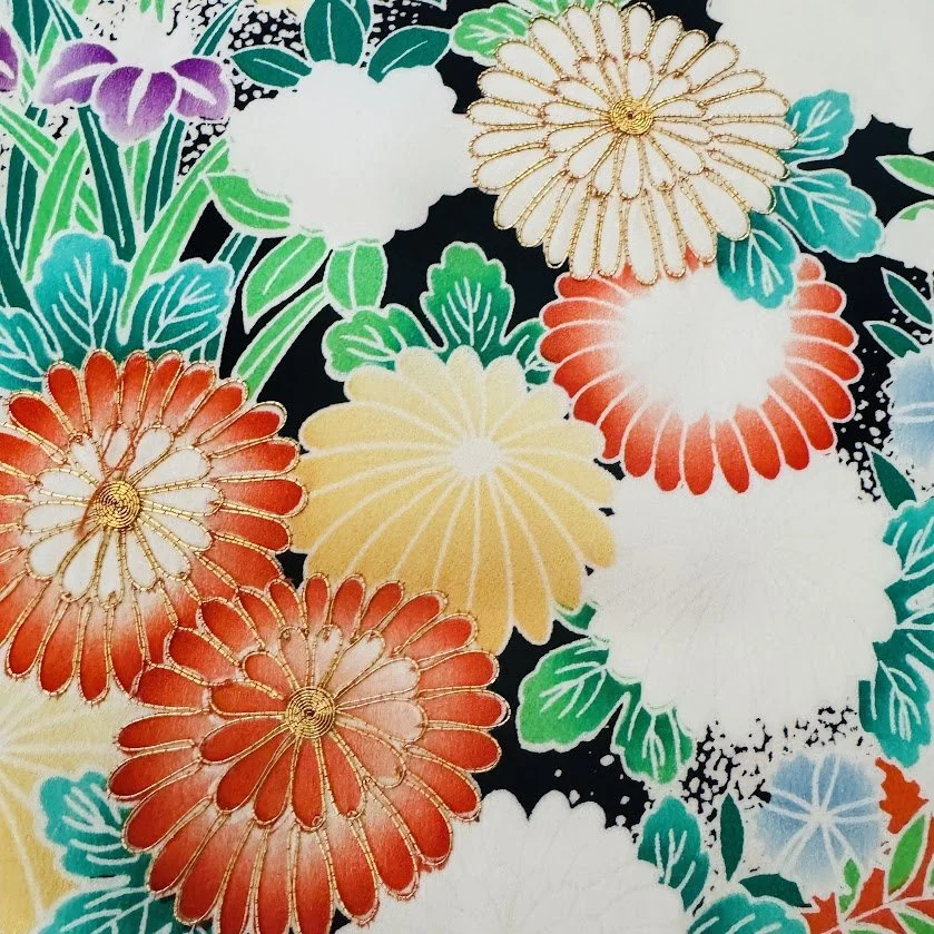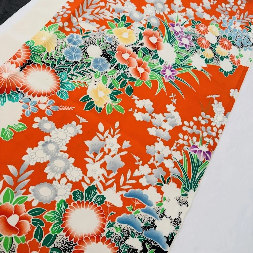+ this bolt is for a formal wear summer kimono, it has 4 kamon (family crest) section - 1 inch white circle (before kamon is painted) on the bolt which is in the middle of the bolt & 2 at the very edge