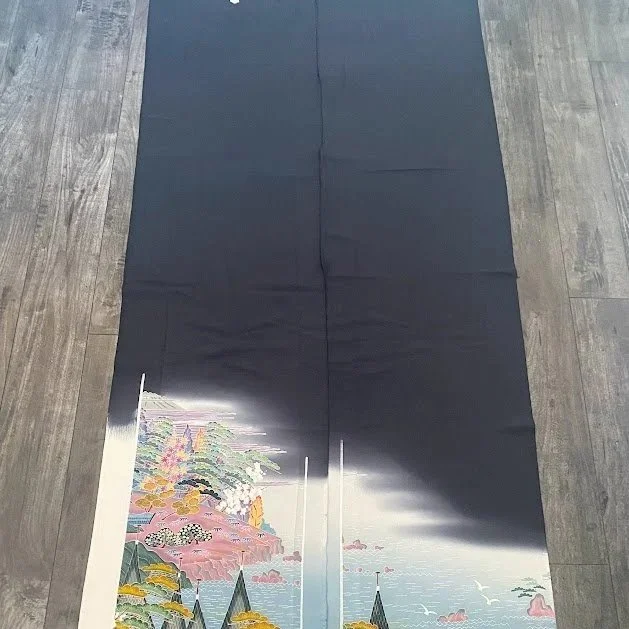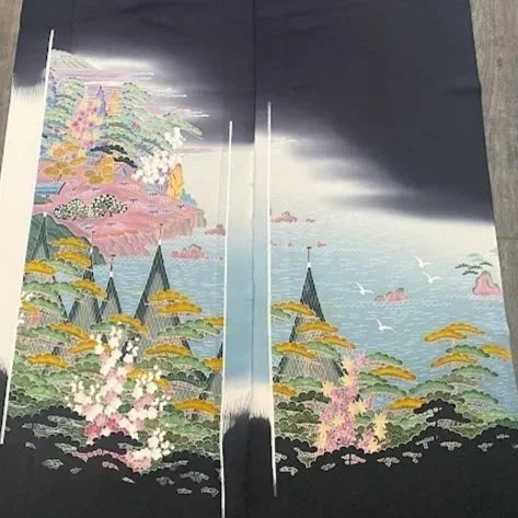 Vintage Silk Japanese Tomesode Black Kimono Fabric Panel