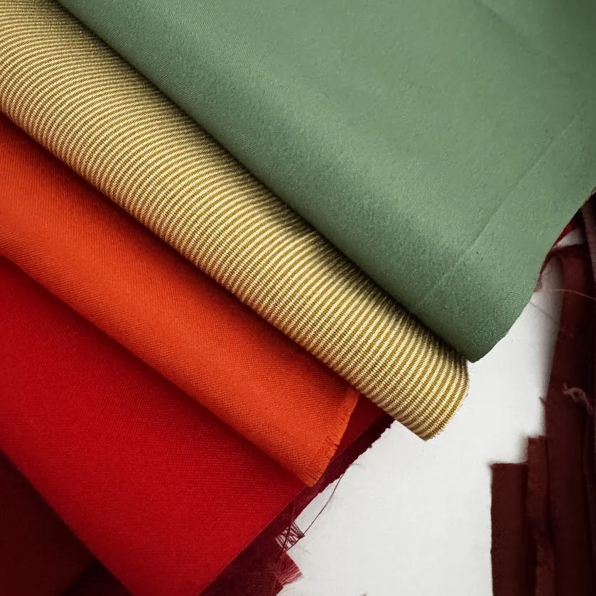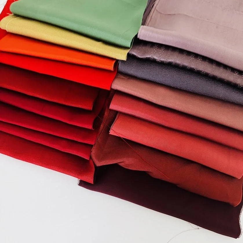 I purchased them as-is, already packed, and each pack comes in different sizes. Fabrics may vary—some are silk, some synthetic, some cotton or wool.