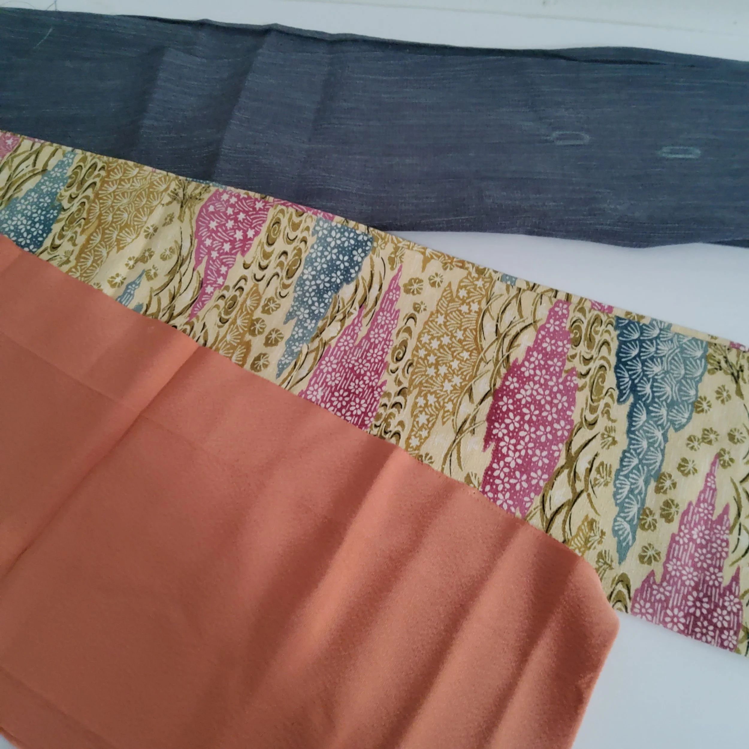 Bolt Renmants /Hand Woven Cotton Like Textured Silk/ Shibori Dyed / Furisode / Edo Komon Included