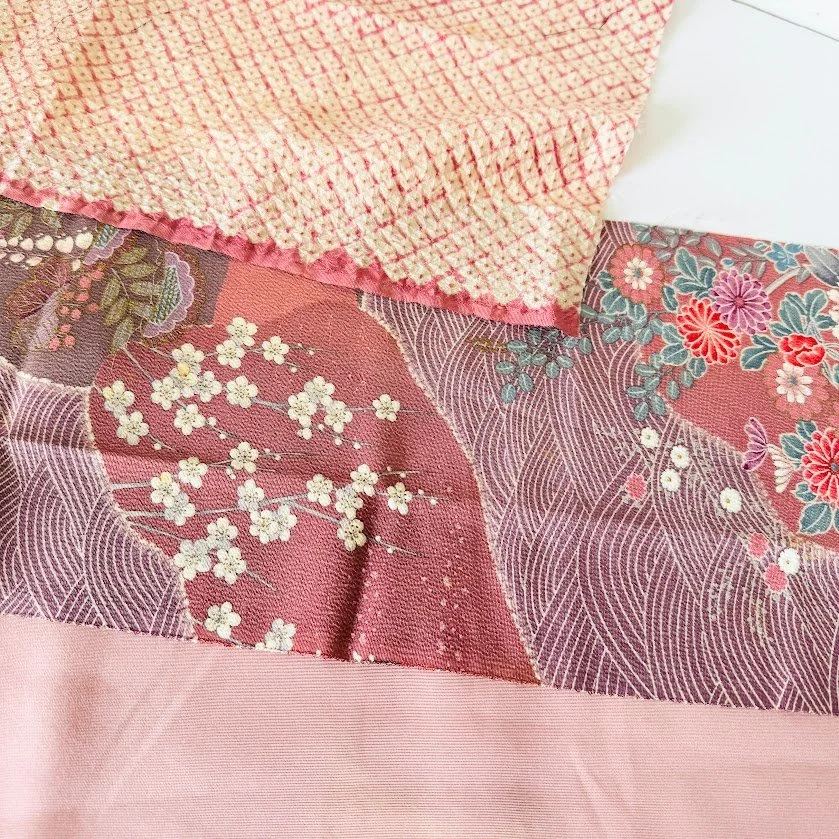 Authentic Vintage Deconstructed Kimono Silk Fabric Scrap Bundle Bundle #181 July