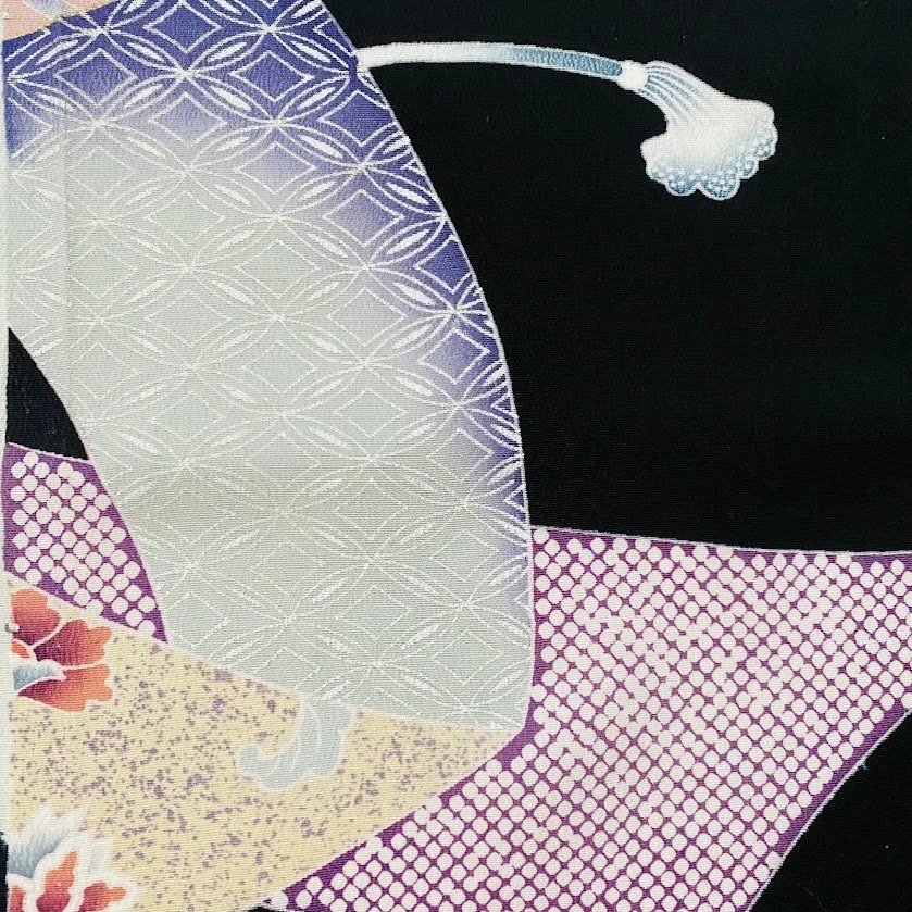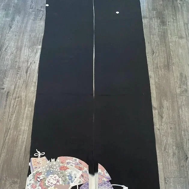 Vintage Silk Japanese Tomesode Black Kimono Fabric Panel