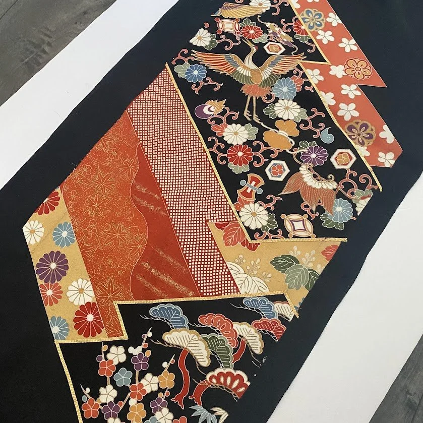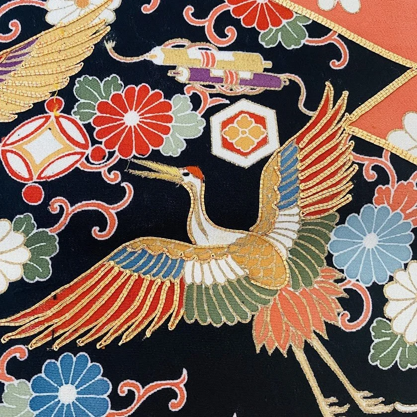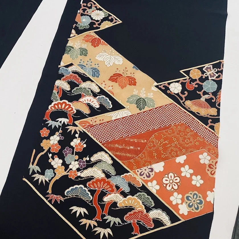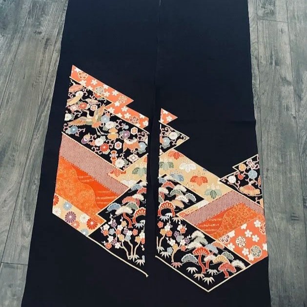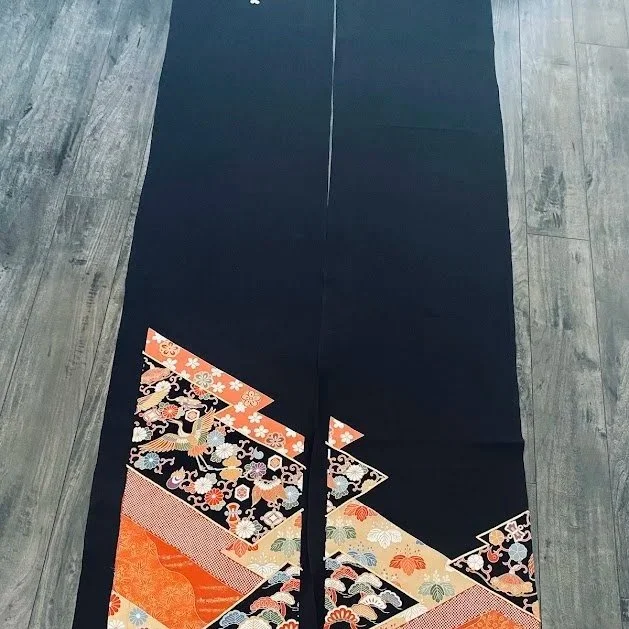 Vintage Silk Japanese Tomesode Black Kimono Fabric Panel