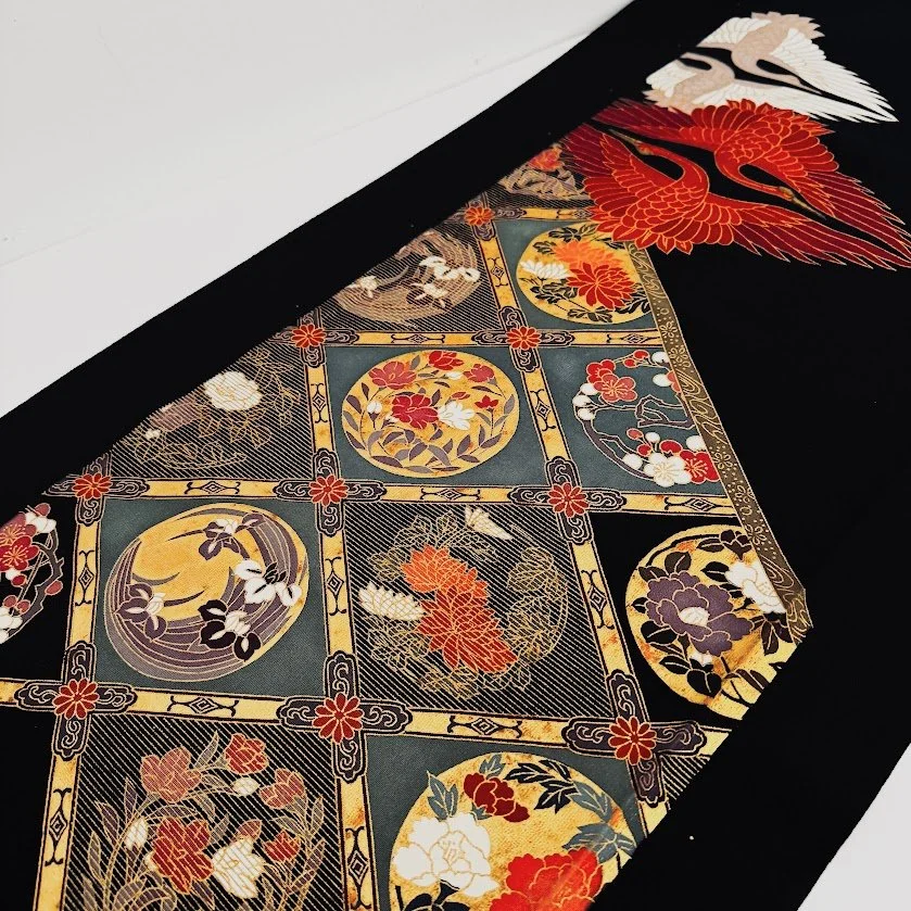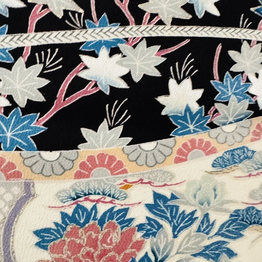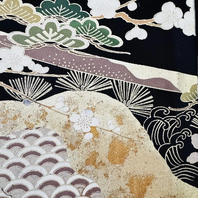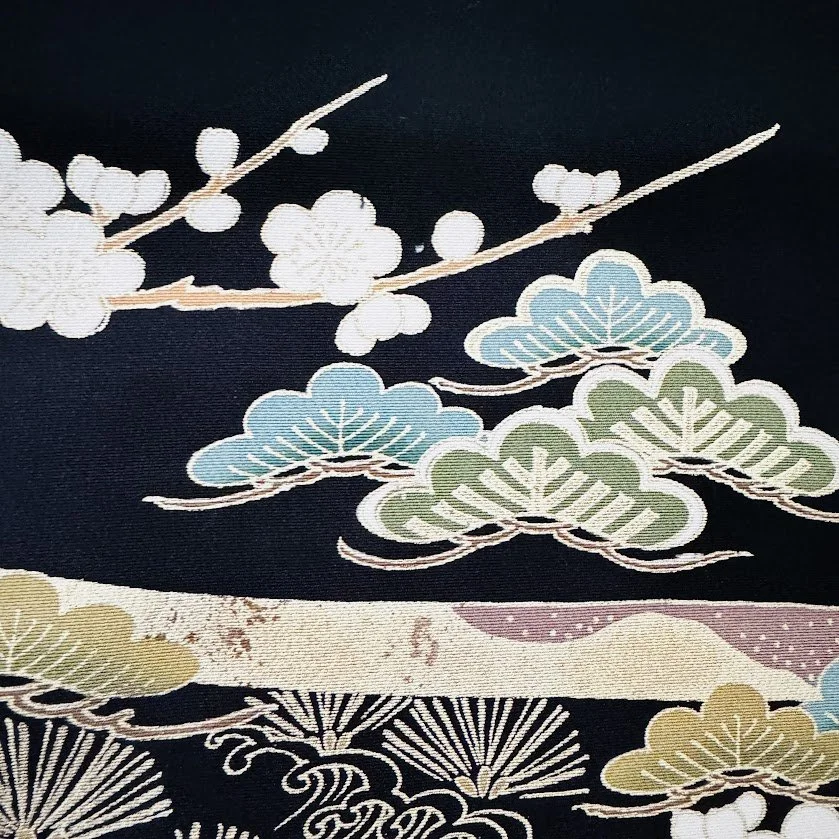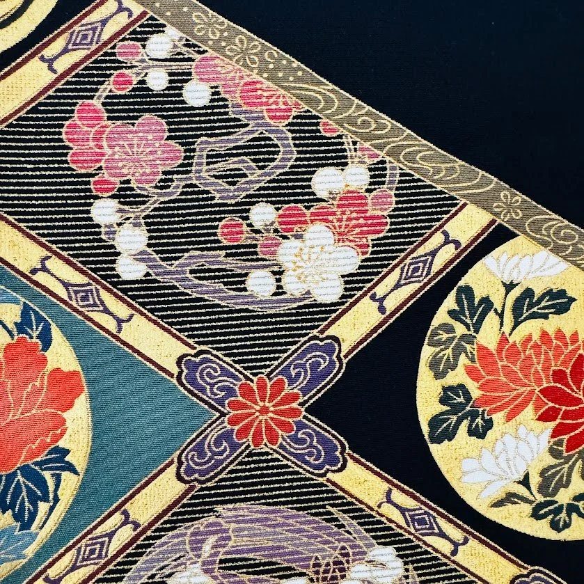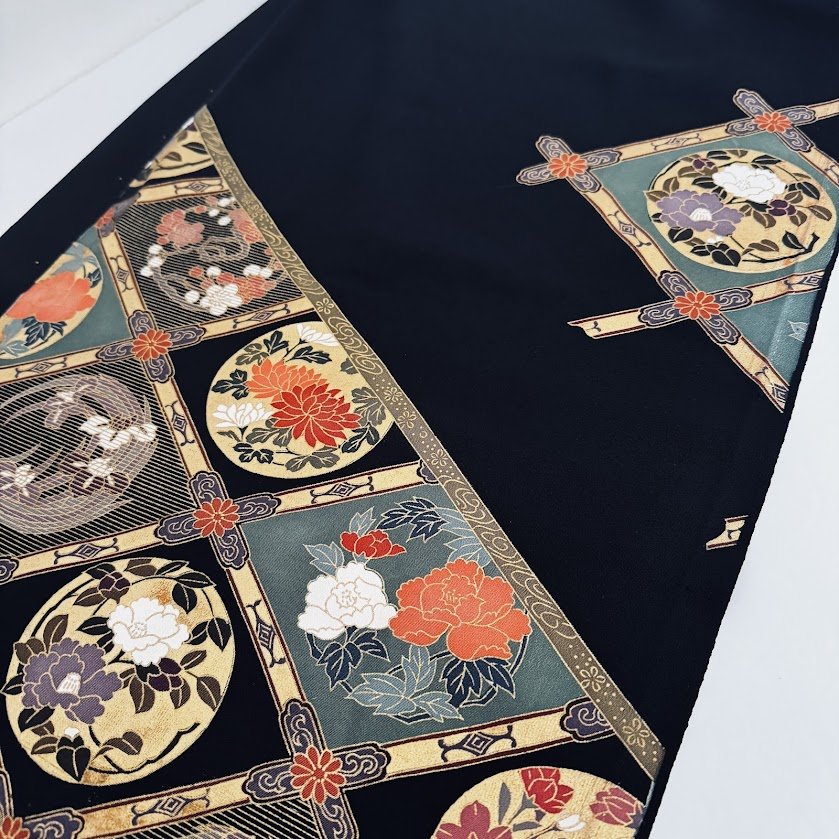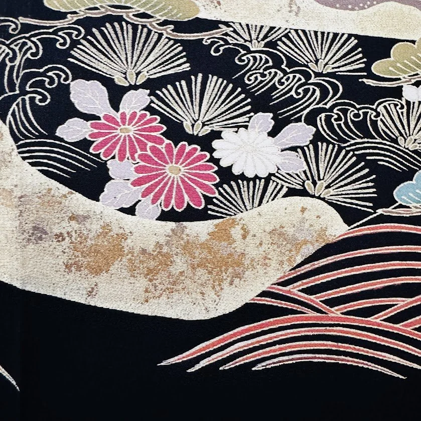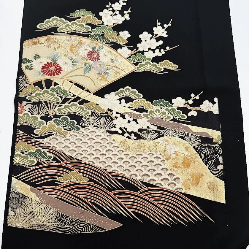 Vintage Silk Japanese Tomesode Black Kimono Fabric Panel