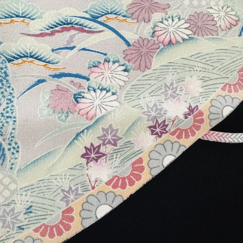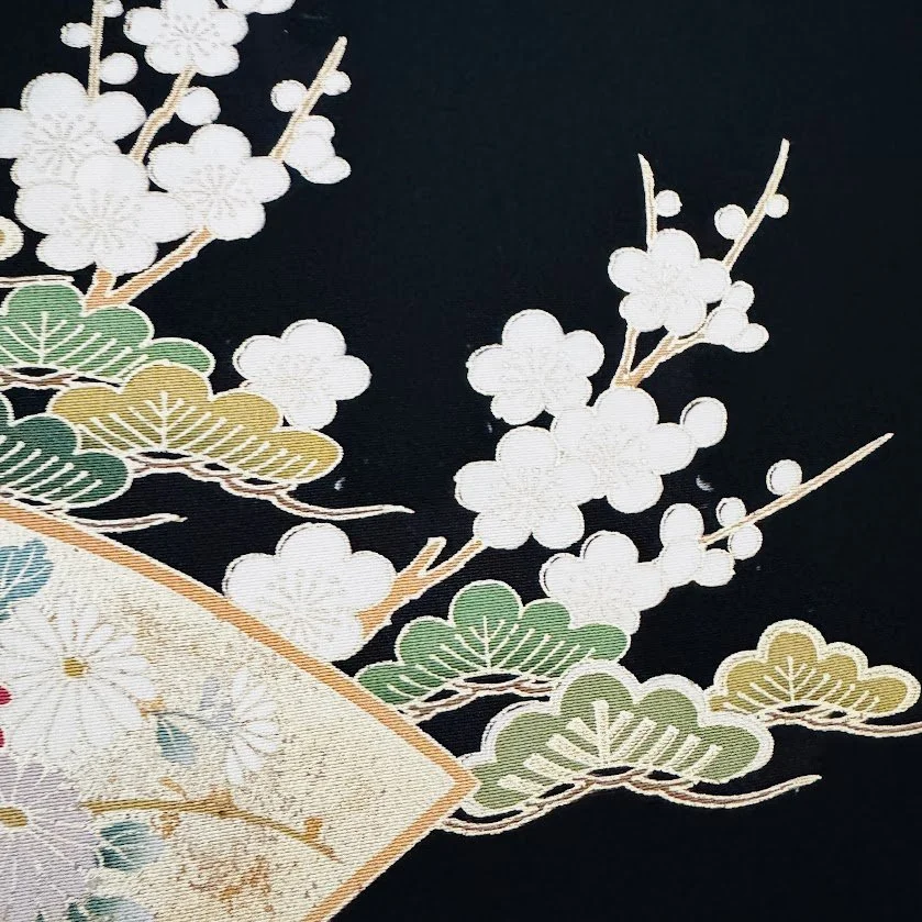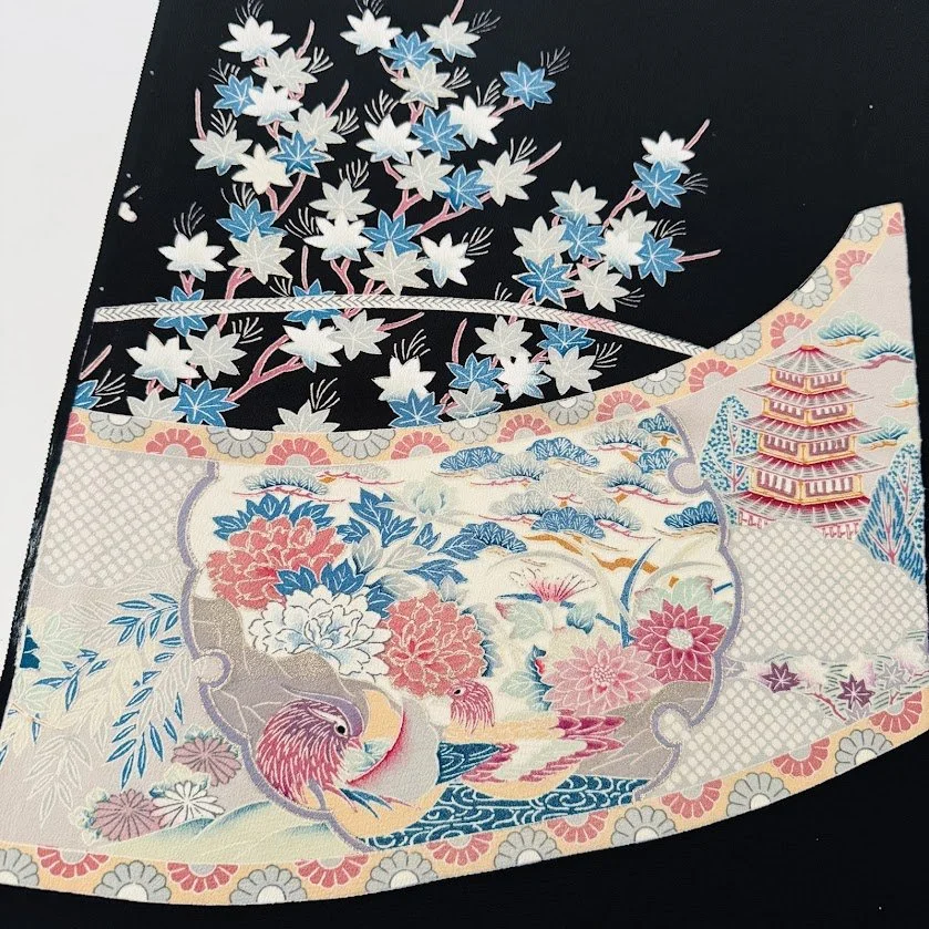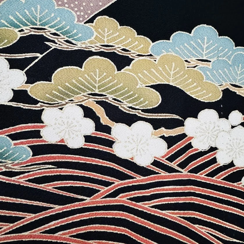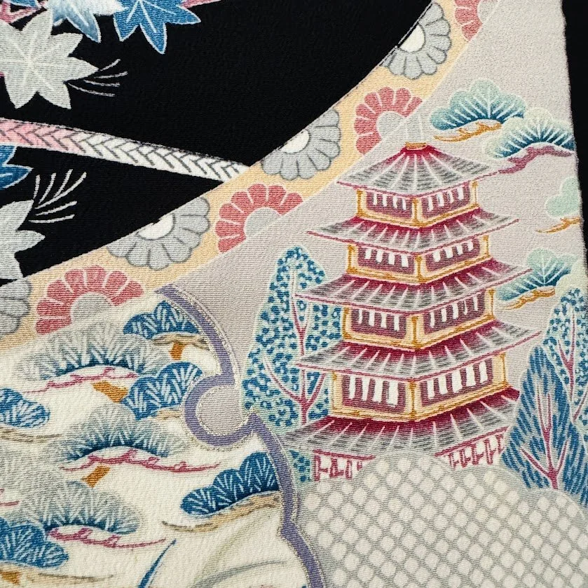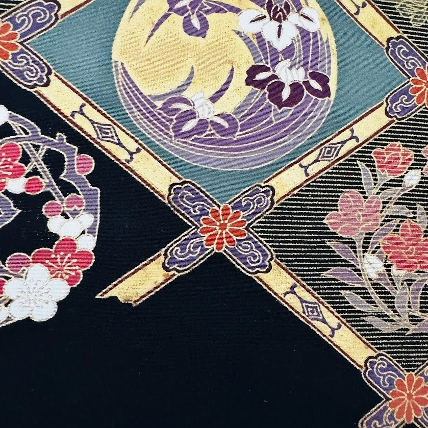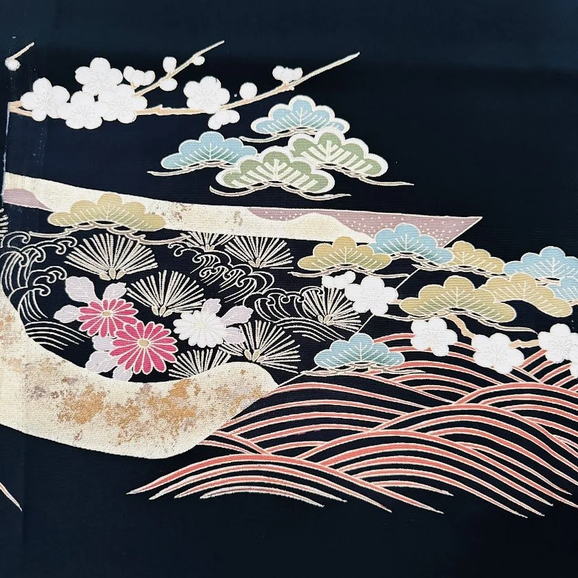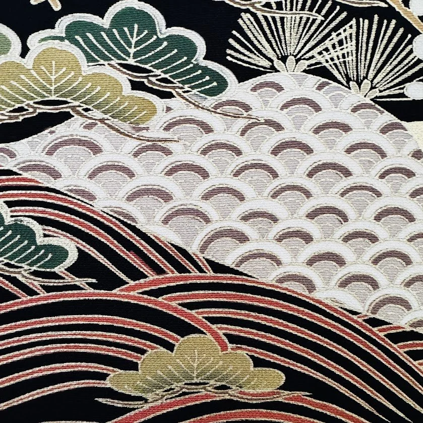 Vintage Silk Japanese Tomesode Black Kimono Fabric Panel