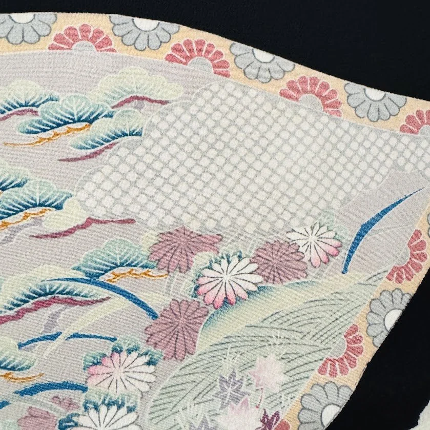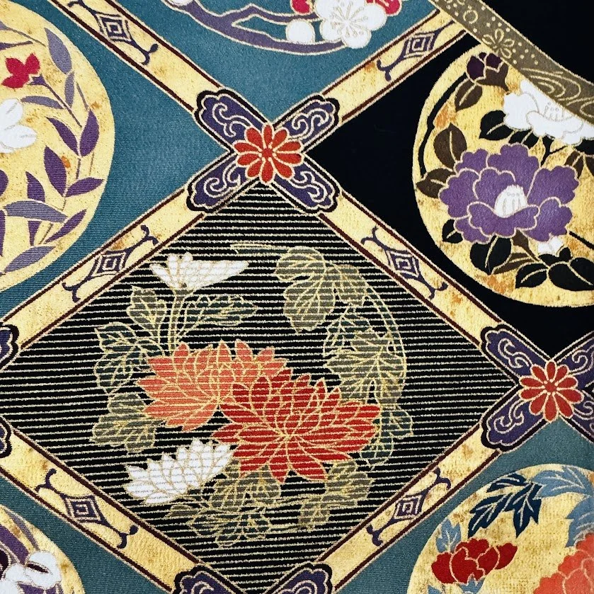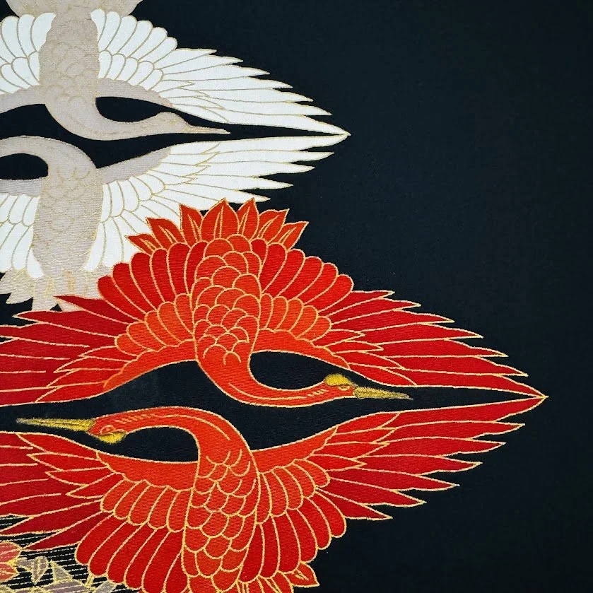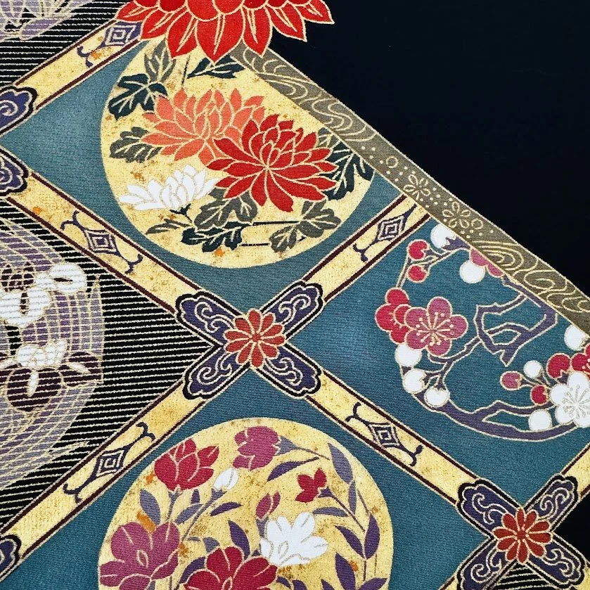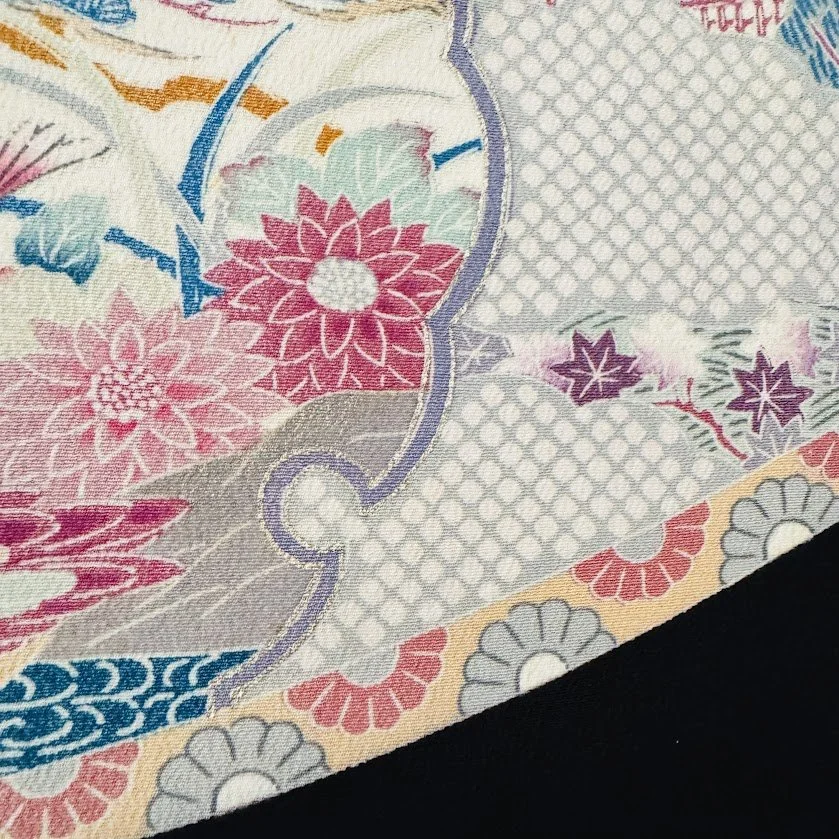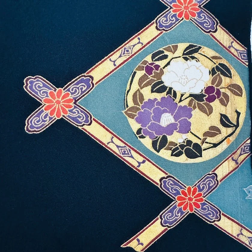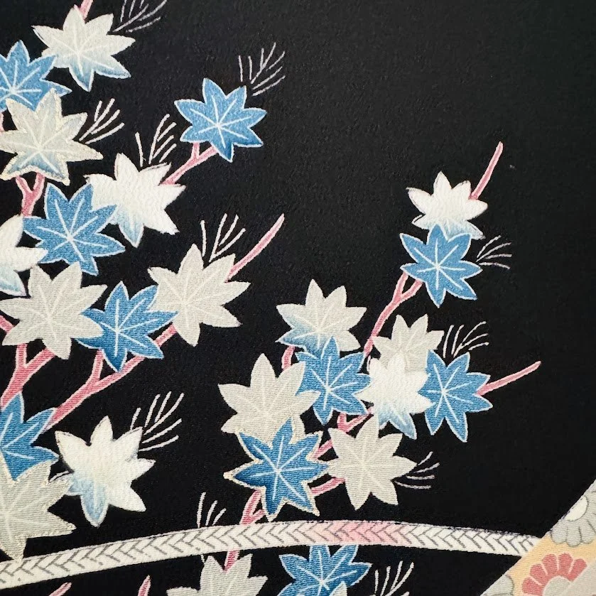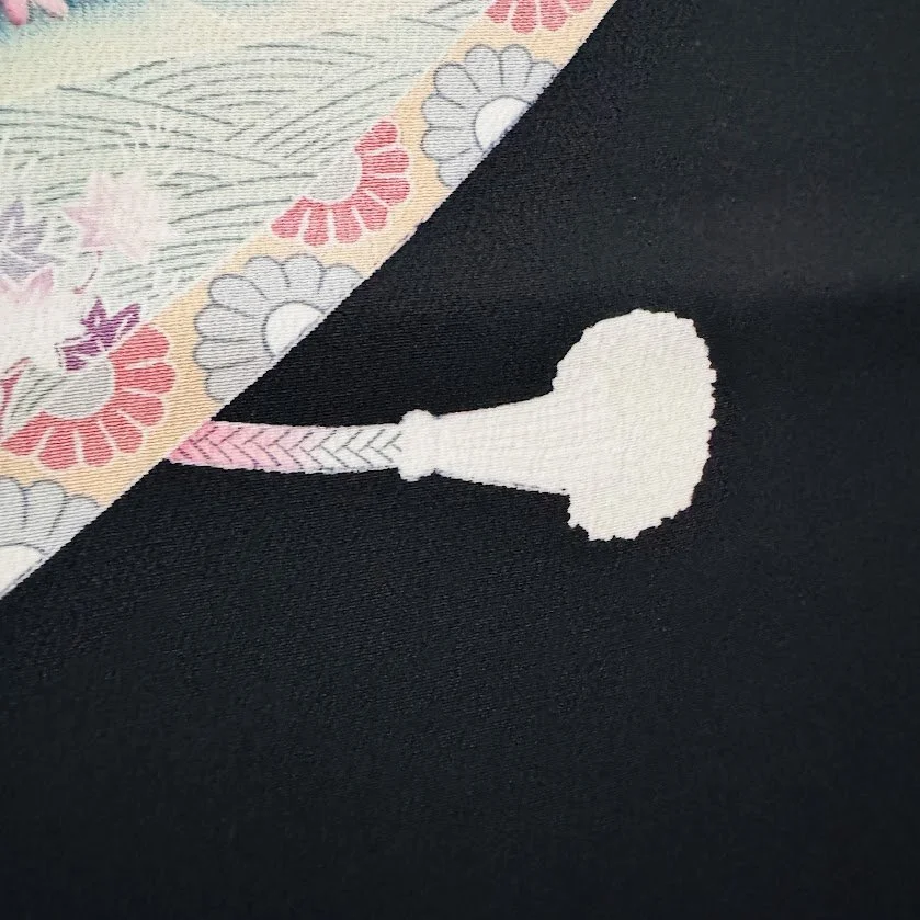 Vintage Silk Japanese Tomesode Black Kimono Fabric Panel