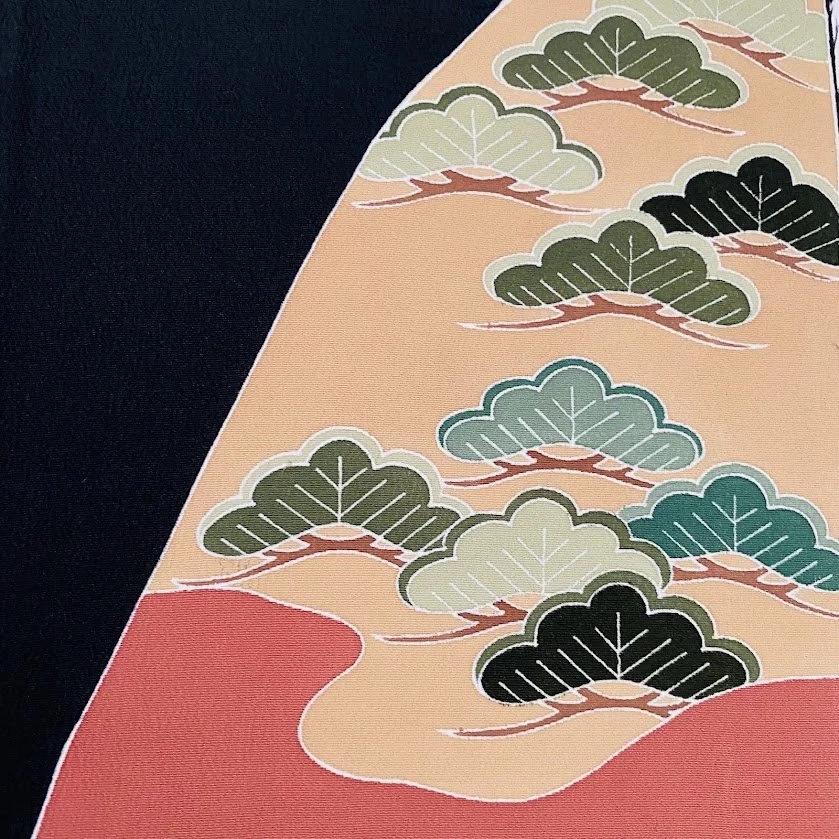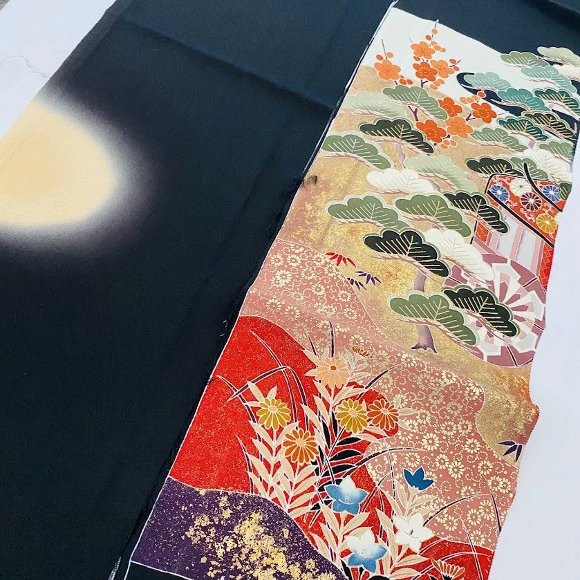 Vintage Silk Japanese Tomesode Black Kimono Fabric Panel