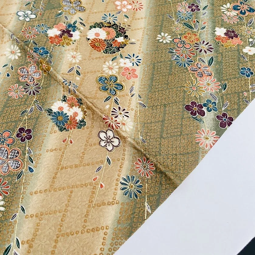 UnUsed Sage Green Leaf Pounding Dyed Kimono Silk RT49